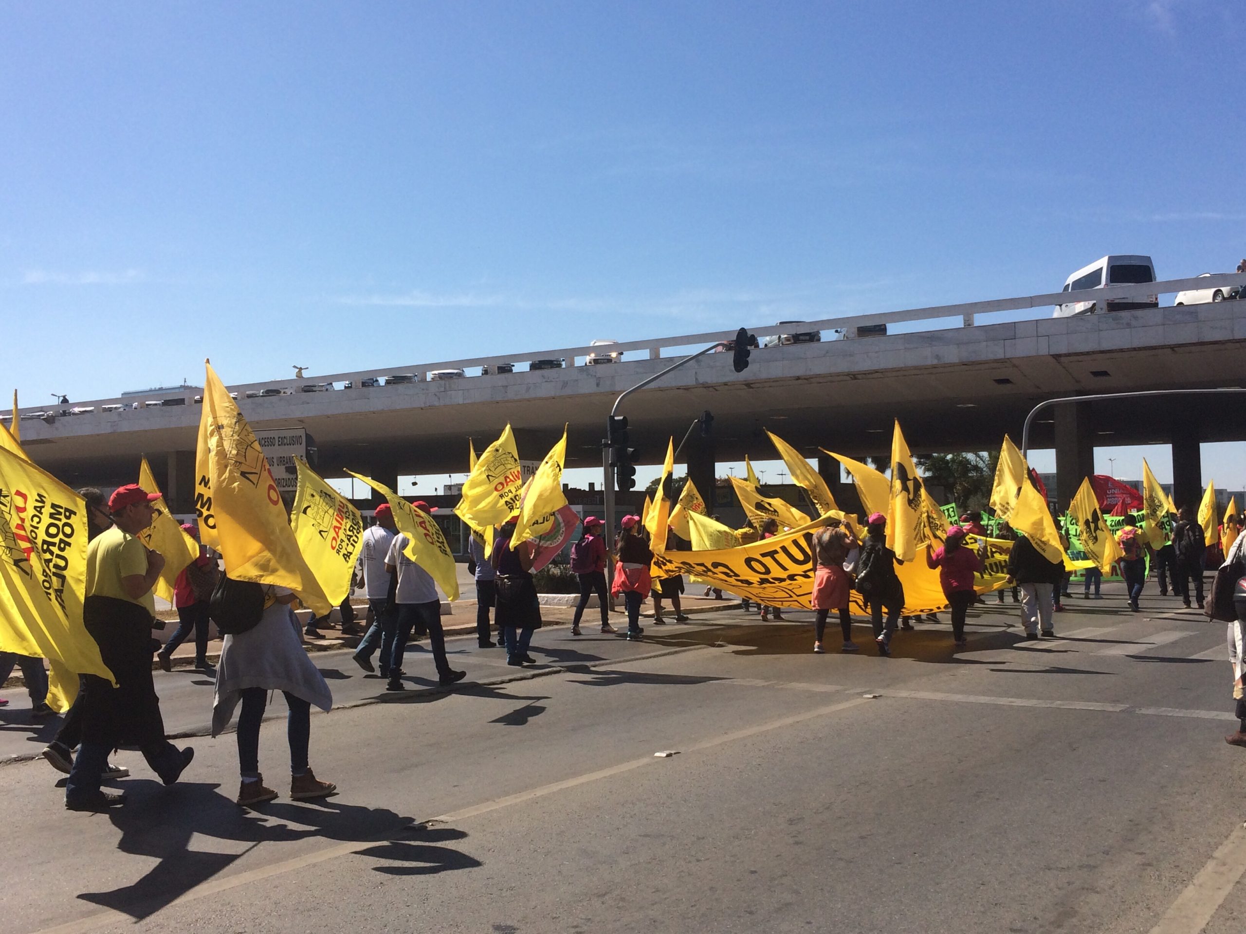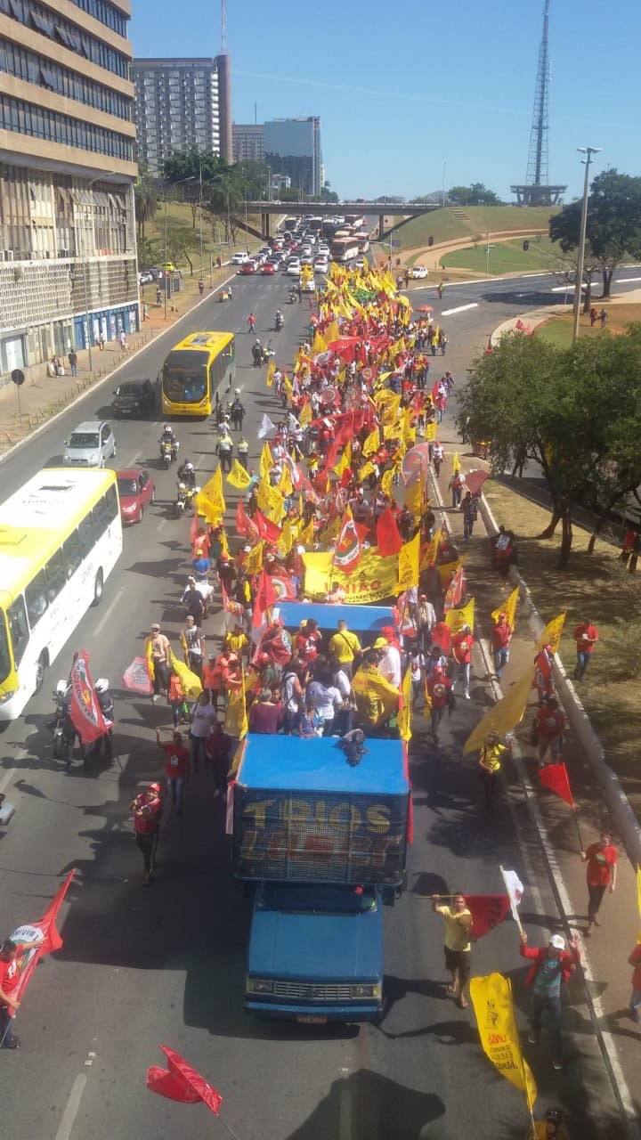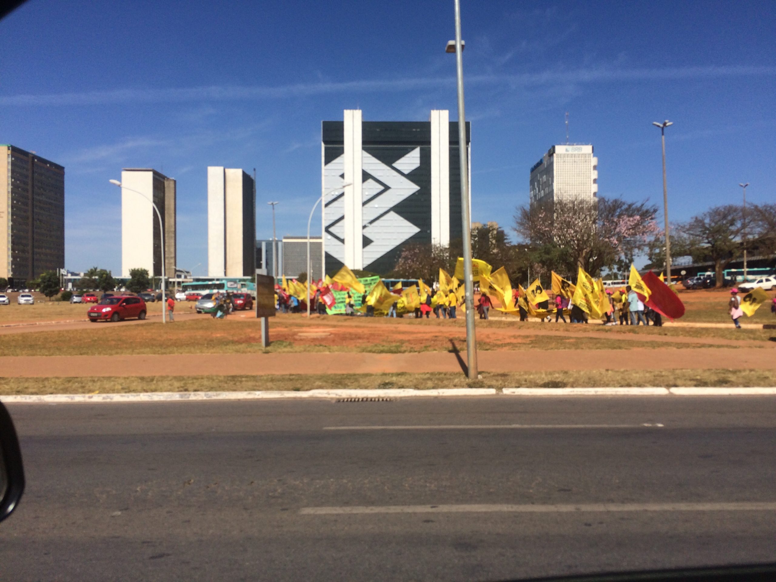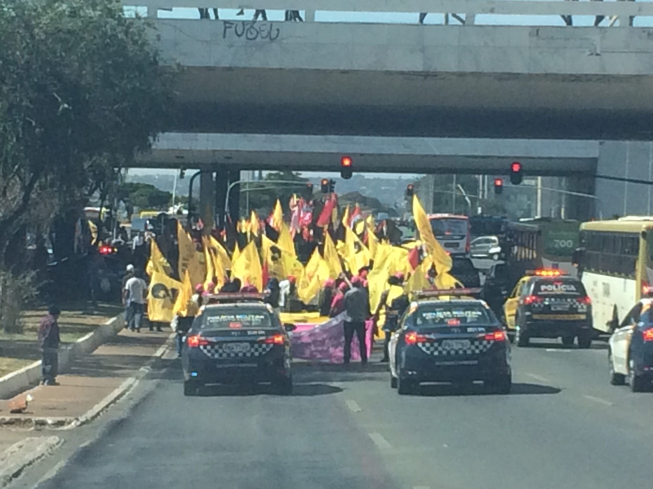 Cerca de 1 mil famílias participaram, na manhã desta terça-feira (05), de uma marcha organizada pelos movimentos sociais de luta pela moradia de todo o Brasil. A concentração foi no estacionamento do Estádio Nacional Mané Garrincha. A mobilização ocupou três faixas do Eixo Monumental saindo do estádio em direção ao Ministério das Cidades que fica no Setor de Autarquias Sul.