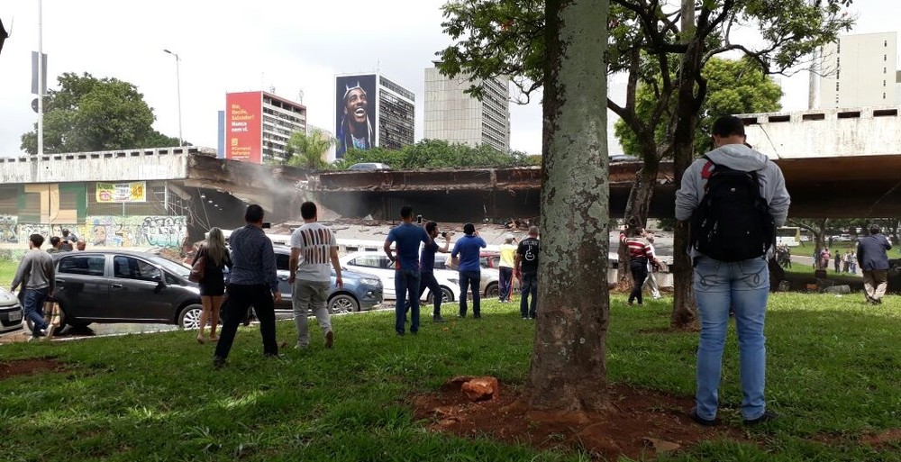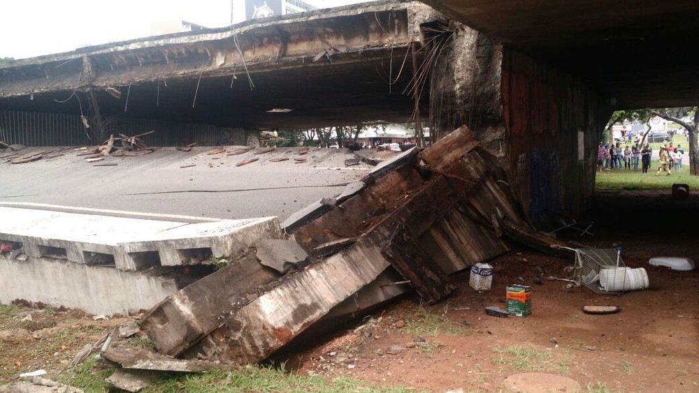 O pedaço de um viaduto no Eixão Sul, na área central de Brasília, desabou no fim da manhã desta terça-feira (6/2) na altura da Galeria dos Estados, a menos de 1 km da Rodoviária do Plano Piloto.