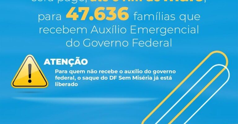 A Secretaria de Desenvolvimento Social (Sedes) informou que vai pagar até o fim deste mês a parcela de maio do DF Sem Miséria para as 47.636 famílias que também receberam Auxílio Emergencial. Veja também PRIMEIRO TERMINAL | Santa Maria ganha espaço definitivo para abrigar ônibus e passageiros De acordo com o Governo do Distrito Federal (GDF), um … Continue lendo DF SEM MISÉRIA | Beneficiários do programa receberão o auxílio até o fim do mês