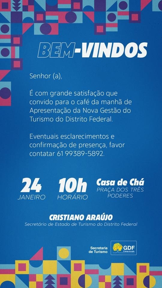 De acordo com a Setur-DF, o objetivo do encontro é apresentar a nova cúpula do órgão, que tem o ex-distrital Cristiano Araújo como secretário, e também debater estratégias que contribuam para impulsionar o turismo na capital do País.