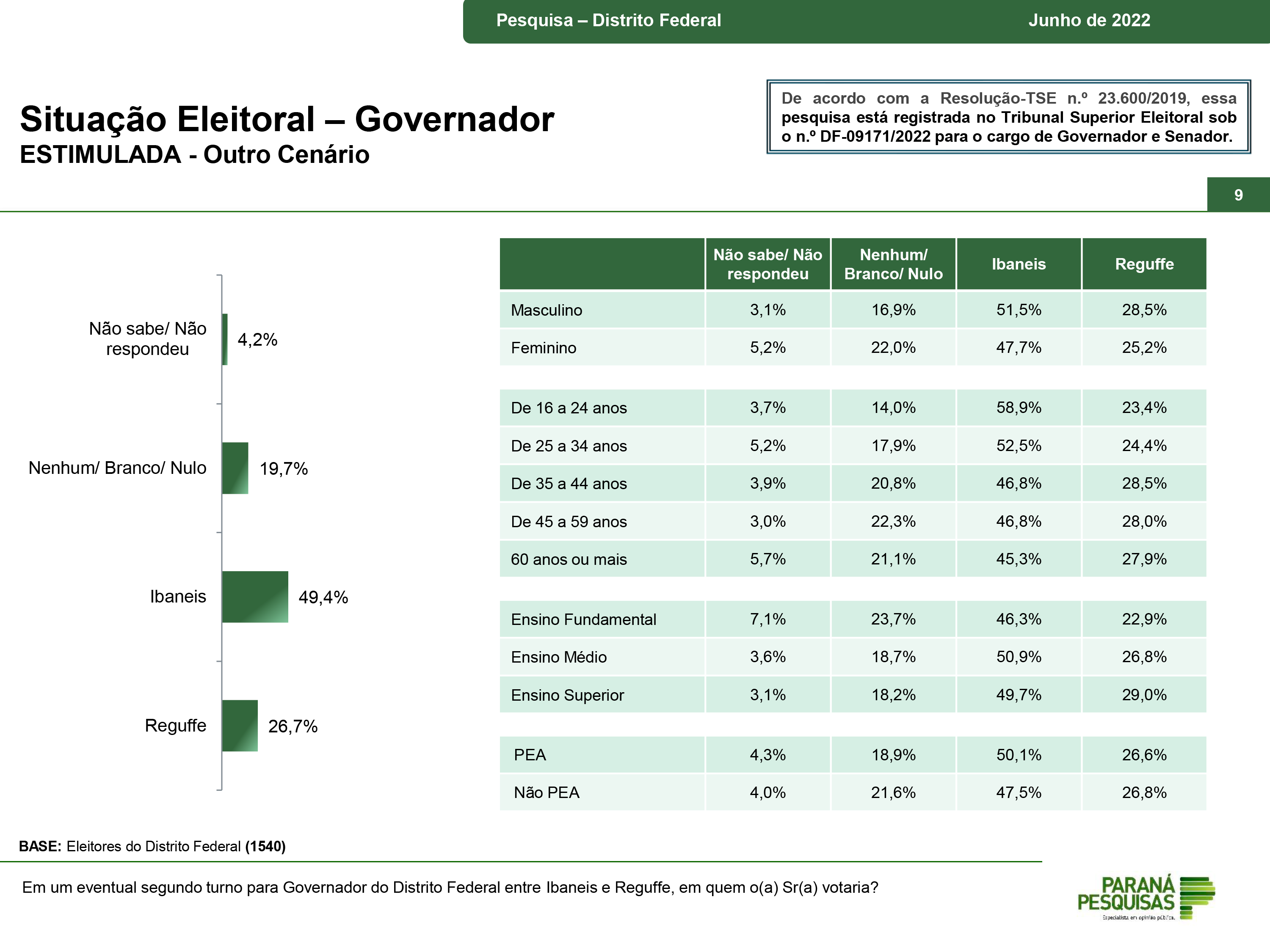 O levantamento do instituto Paraná Pesquisas foi registrado no Tribunal Superior Eleitoral (TSE) sob o número DF-09171/2022.