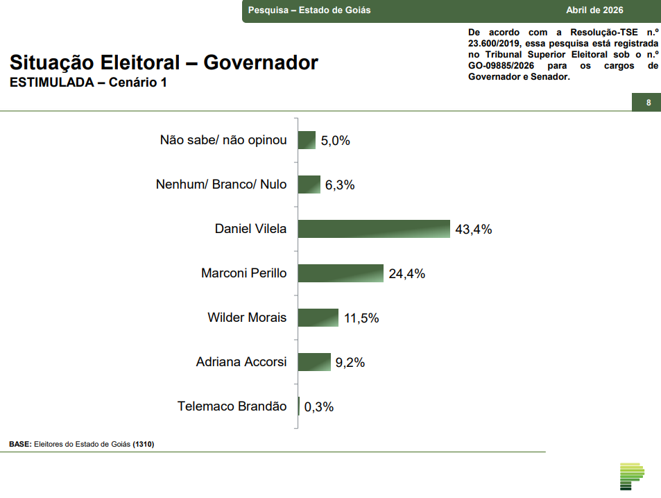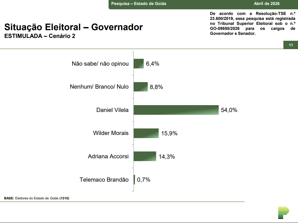 O levantamento está registrado no Tribunal Superior Eleitoral sob o nº GO-09885/2026.
