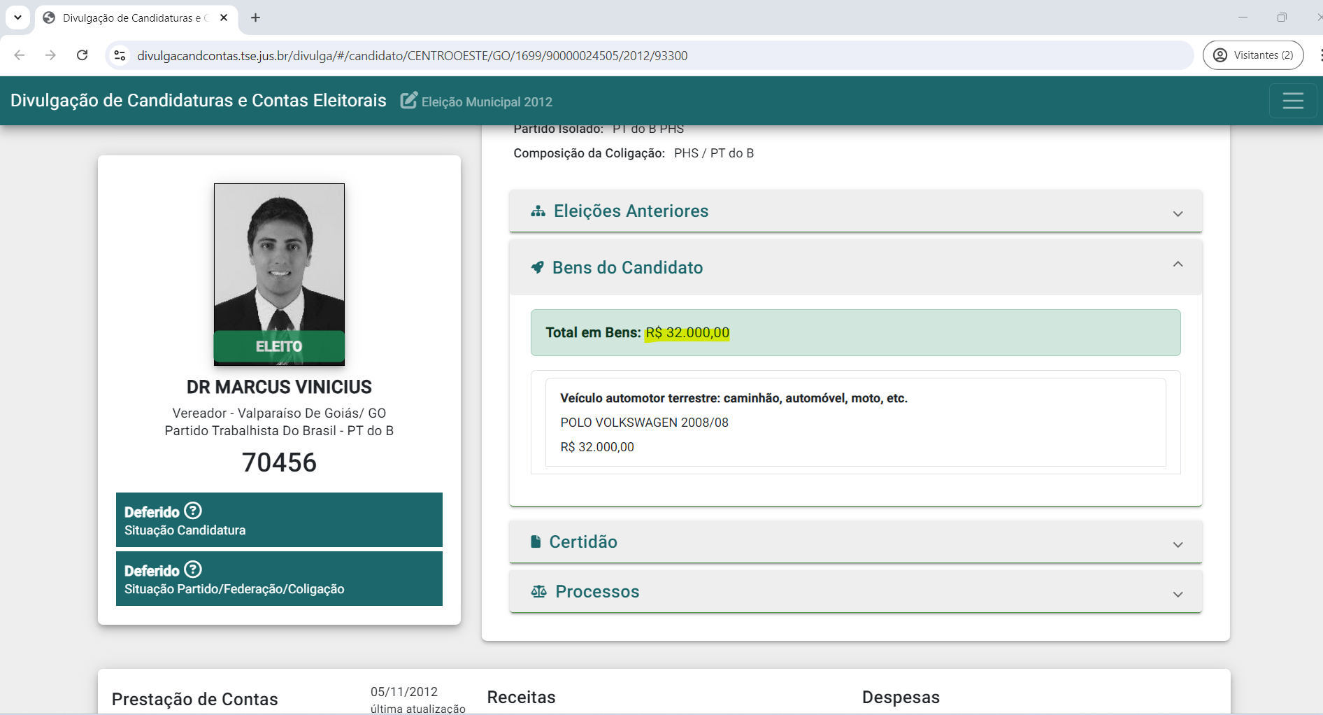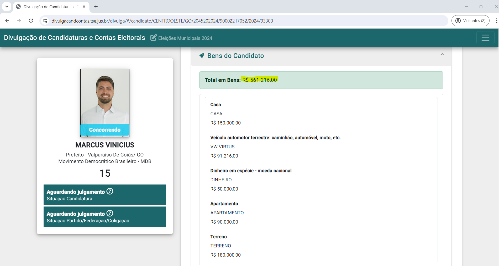 Com a liberação dos dados dos candidatos que vão concorrer nas Eleições Municipais deste ano por meio da plataforma DivulgaCandContas da Justiça Eleitoral, os eleitores começaram a verificar os dados de quem vai disputar a prefeitura de sua cidade. Curiosamente, Cinquentinha, candidato de Pábio Mossoró em Valparaíso de Goiás, declarou que teve crescimento patrimonial de 1.753% e que guarda R$ 50 mil de dinheiro em espécie em sua casa.