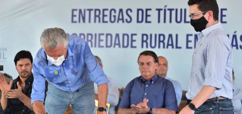 Em sua décima visita ao estado de Goiás, o presidente Jair Bolsonaro e o governador Ronaldo Caiado entregaram 3.305 títulos de propriedade rural a agricultores de assentamentos. Essa foi a maior transferência de documentação de posse de terra já promovida pelo Poder Público. A medida beneficia 57 assentamentos rurais localizados em 31 municípios goianos e … Continue lendo MAIS DE 3,3 MIL ESCRITURAS | Bolsonaro entrega títulos de propriedade rural em Goiás junto com Ronaldo Caiado