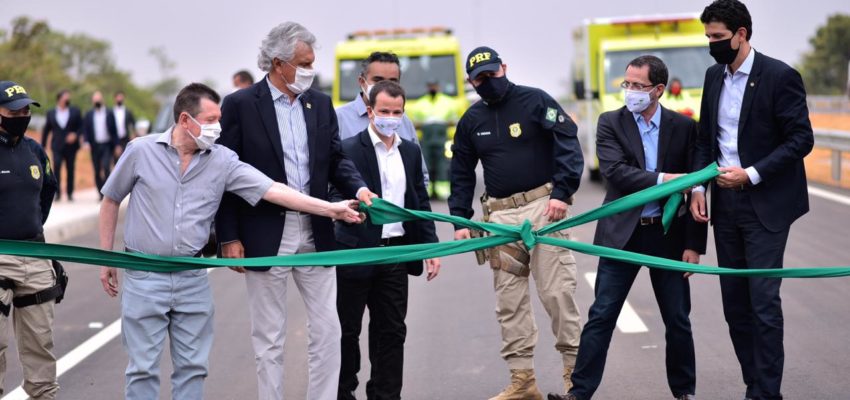 O governador Ronaldo Caiado participou, ontem (21/09), da entrega de 15,1 quilômetros de novas pistas duplicadas da BR-050, no trecho entre os municípios de Catalão e Cumari, na região Sudeste do Estado. O investimento no percurso é de R$ 67,5 milhões, valor que aprimora a logística de transporte e é fator crucial para oferecer condições … Continue lendo PARCERIA FORTE | “Bolsonaro é o presidente que mais investe em Goiás desde JK”, diz Caiado ao entregar trecho da BR-050 (Catalão)