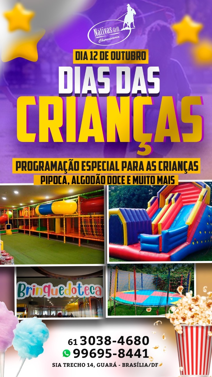 Para celebrar o Dia das Crianças, a churrascaria Nativas Grill, localizada no SIA Trecho 14, preparou uma programação para lá de especial para receber a criançada na quarta (12) e garantir a diversão e brincadeira.