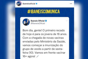 Ibaneis celebrou nas redes sociais o início da vacinação da nova faixa etária.