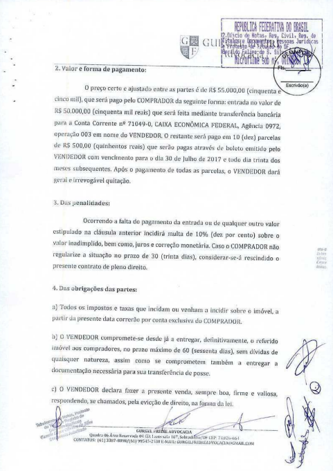 Um detalhe importante é que nos contratos celebrados entre os supostos grileiros e as pessoas que foram enganadas constavam o logotipo do escritório de advocacia do presidente da Subseção de Sobradinho (vide abaixo).