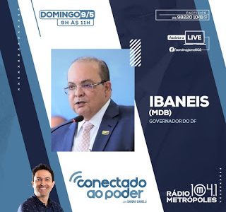O programa Conectado ao Poder da Rádio Metrópoles 104,1 FM, neste domingo (09), que vai ao ar, das 9h às 11h, recebe o governador do Distrito Federal, Ibaneis Rocha (MDB). Veja também ELEIÇÕES 2022 | Decisão do STF adia tentativa de Arruda voltar ao poder Ancorado pelo jornalista Sandro Gianelli, o programa de amanhã terá … Continue lendo CONECTADO AO PODER | Ibaneis Rocha é o entrevistado do programa neste domingo (9)