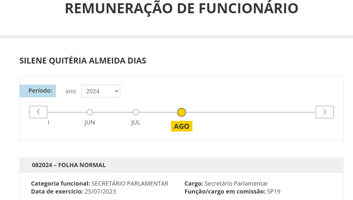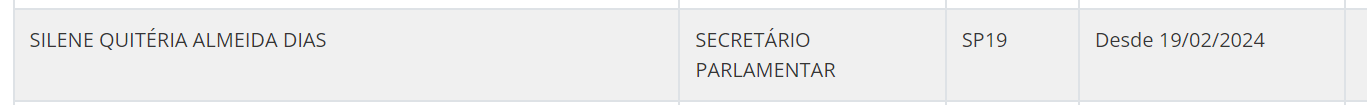Silene foi cedida para exercer a função de secretária parlamentar do deputado Julio Cesar em fevereiro deste ano (vide abaixo). Conforme o portal da Transparência da Câmara dos Deputados, a assessora do parlamentar republicano recebe cerca de R$ 5 mil pela função mais os vencimentos de servidora concursada da saúde.