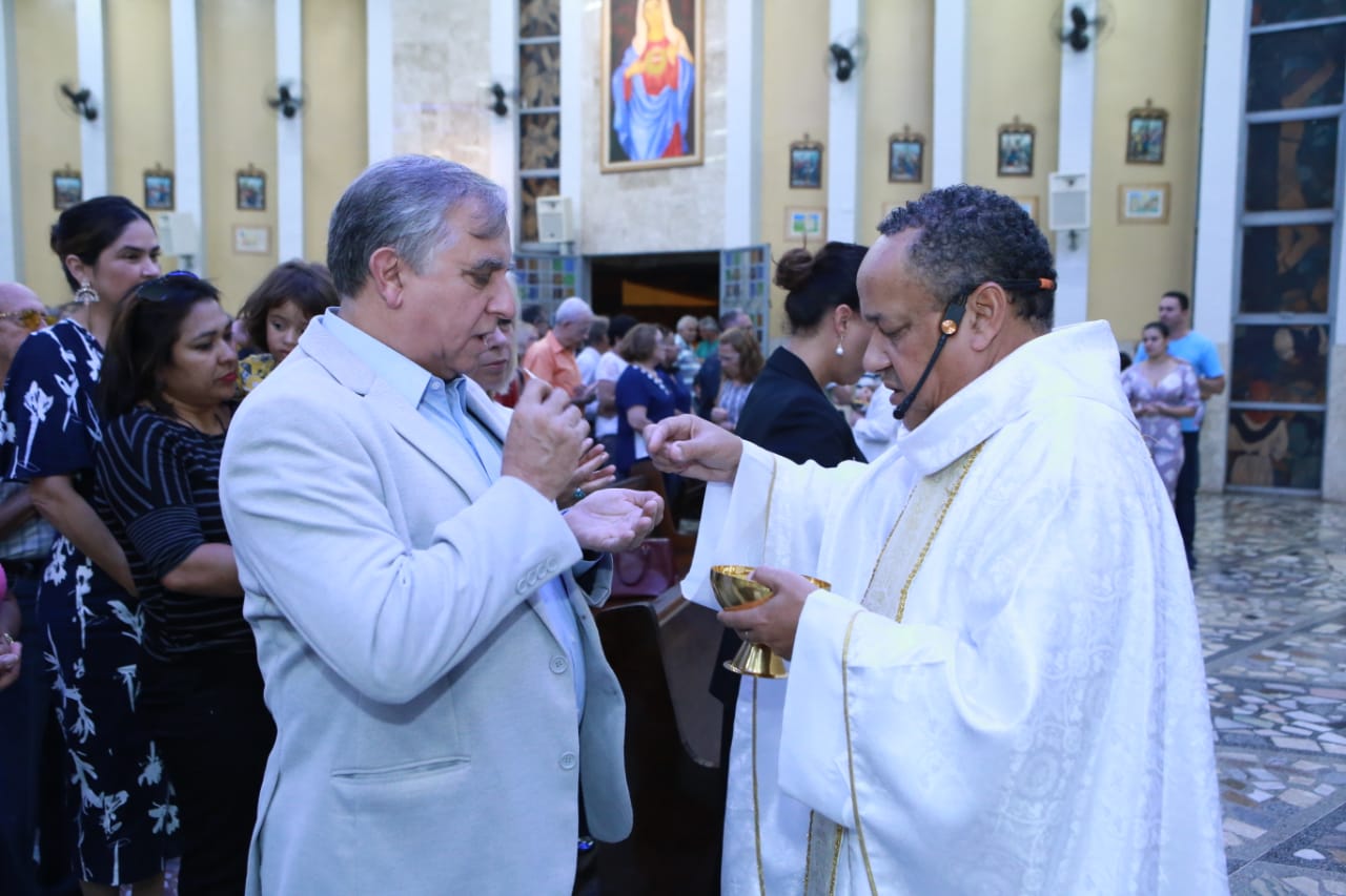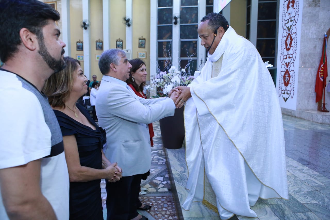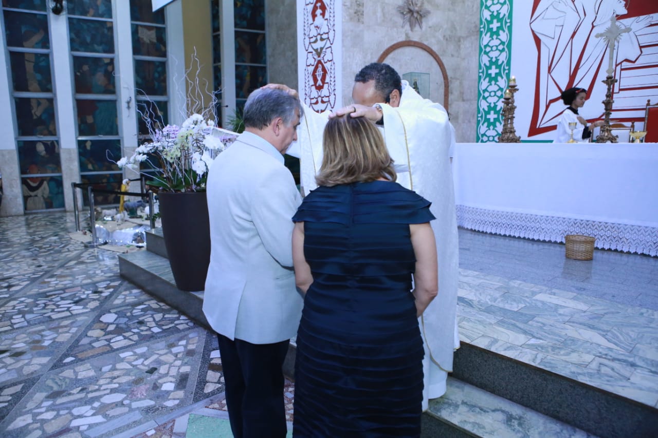 Os padres Mário Alves Bandeira e Katê foram os responsáveis por conduzir a brilhante celebração. Izalci e sua esposa, dona Ivone, participaram da Eucaristia levando as hóstias até o altar. No encerramento, uma foto do futuro senador foi mostrada no telão da igreja e, em seguida, uma representante da paróquia saudou Izalci e conclamou a todos a fazerem uma oração em prol de sua saúde para que possa desempenhar um excelente trabalho para o Distrito Federal.