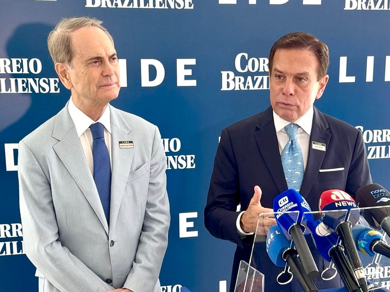 “Eu não resido aqui e, por isso, não voto aqui. Mas, se residisse, eu votaria em Celina Leão para o governo do Distrito Federal. Eu conheço o seu trabalho. E conheço o trabalho do governador Ibaneis Rocha”, disse Doria, ao lado do presidente do Lide Brasília, o empresário Paulo Octavio.