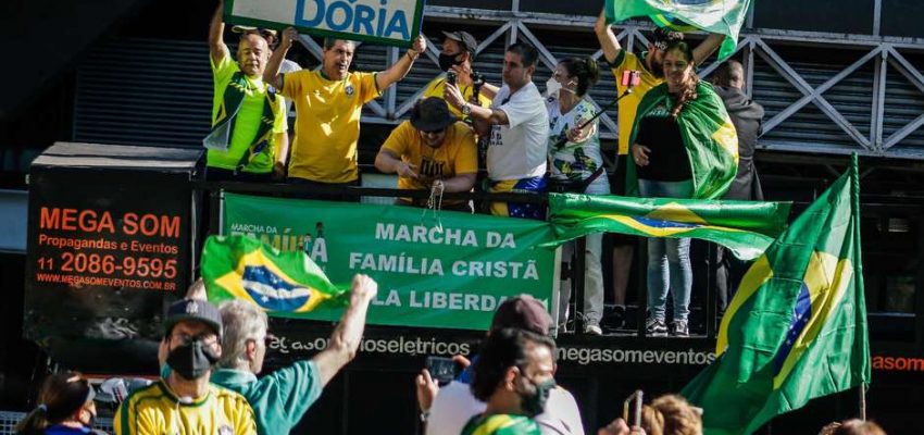 Apoiadores do presidente Jair Bolsonaro se reuniram em manifestações em diversas cidades neste domingo (11) contra a proibição de missas e cultos presenciais para evitar a disseminação da covid-19. Brasília, São Paulo, Rio de Janeiro, Campo Grande e outras cidades receberam atos e carreatas de grupos relativamente pequenos. Veja também PRESSÃO NO PRESIDENTE | Oposição diz que … Continue lendo MANIFESTAÇÕES PEQUENAS | Aliados do presidente Bolsonaro protestam em diversas cidades contra a proibição de cultos e missas