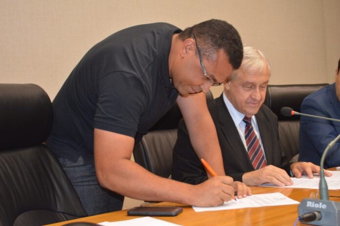 A comissão eleitoral chamou um a um dos diretores que compuseram a “Chapa Professor Chico” para assinar o termo de posse. Em seguida, foi realizada a transmissão simbólica do cargo de diretor-presidente pelo jornalista e radialista Sandro Gianelli para o também jornalista e radialista Toni Duarte.
